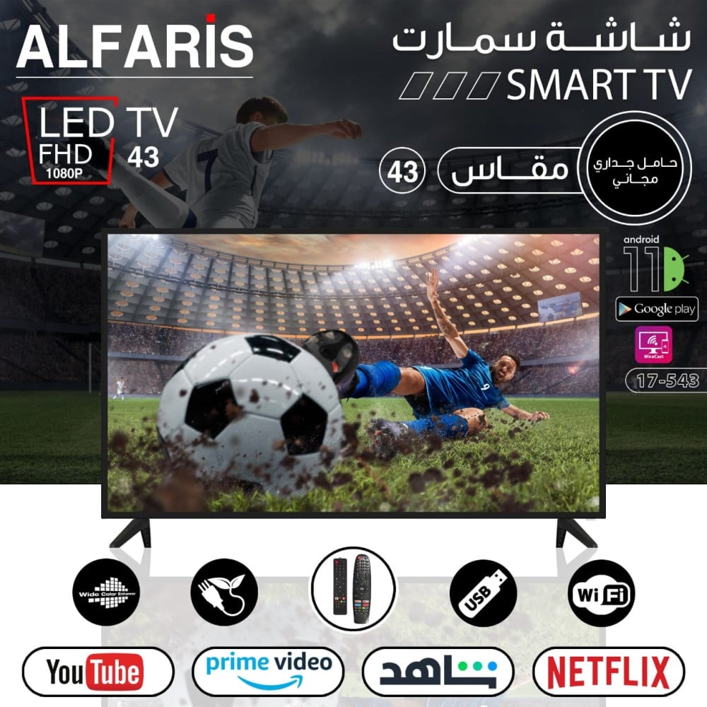شاشة 43 بوصة LED-FHD تتميز بتصميم أنيق ونحيف يضيف لمسة عصرية لأي مكان تقوم بتركيبها فيه. تتميز بزوايا رؤية واسعة تسمح لك بمشاهدة الصورة بوضوح من أي زاوية في الغرفة.