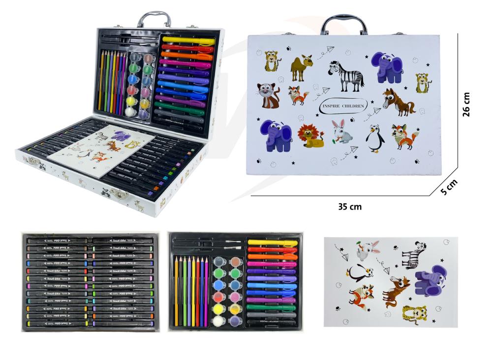 مجموعة الرسم والإبداع للاطفال في شنطة (58 قطعة)، الألومنيوم، أبيض