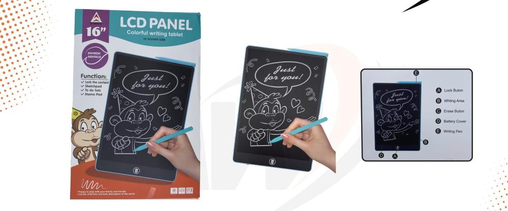 - يعتمد لوح الكتابة المريح على تقنية العرض المنعكس ، شاشة LCD الحساسة للضغط.